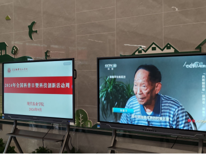 在科学家故事展播中,以《“共和国勋章”获得者·袁隆平》为主题,用视频的形式向广大师生讲述了袁隆平是我国研究与发展杂交水稻的开创者,也是世界上第一个成功利用水稻杂种优势的科学家,被称为“杂交水稻之父”;从上个世纪60年代开始研究杂交水稻至今,袁隆平创建了超级杂交稻技术体系,使我国杂交水稻研究始终居于世界领先水平。通过视频展播,激发了广大师生学农、爱农、强农、兴农的意志和决心。