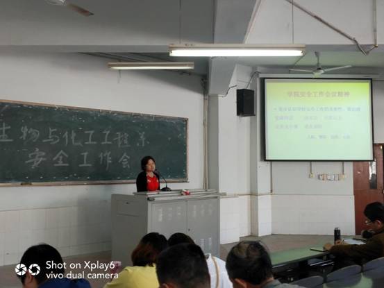 为了让同学们提高安全意识,2017413日,由宜宾职业技术学院生物与化工工程系开展的安全工作会议在第一教学楼1116教室圆满召开,本次会议由党总支书记刘雪梅书记执讲,参加此次会议的有生化系全体教职工和各学生干部及各班班干部。