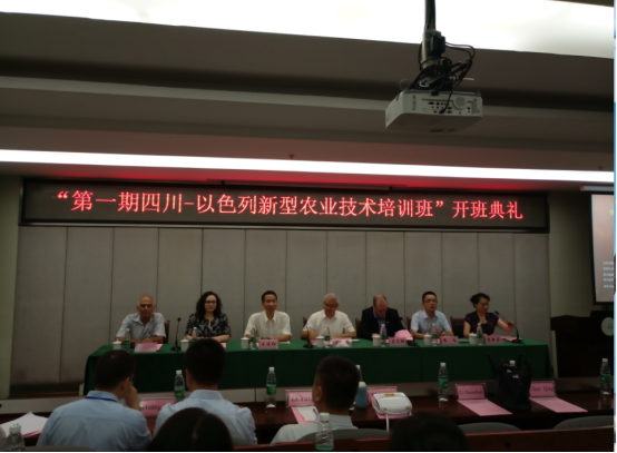 四川省外国专家局局长王建红、四川省教育厅国际交流合作处处长廖飞、以色列驻成都总领事馆总领事蓝天铭先生、副领事安珊妮女士,以及四川农业大学副校长吴德出席了开班仪式。会议由四川农大国际合作处副处长夏新蓉主持。
