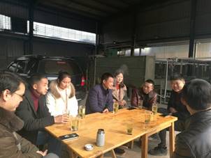 教研室在名山区回访了本专业部分毕业生,06级李柏林和罗丽琴、09级闵静、13级罗梦宇4位学生毕业后回乡创业,从茶叶小作坊开始目前建立有3家茶业公司,其中2家年茶叶生产量近十万公斤,1家茶叶产量约五万公斤。目前他们正抓住秋冬停产的时间,发挥自身能动性进行生产的规范化和能源的清洁化改造工作,以实现企业的可持续发展。看到学生的创业成果,老师们感到由衷的高兴和祝福,并希望他们结合自身能力和市场情况,提高生产能力,增加科技水平,争取取得更大的成就。