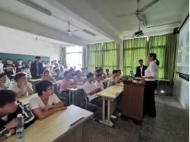2019年9月29日上午9点,宜宾天原海丰和泰有限公司综合管理科副科长胡燕一行2人,到校对化工专业、机电专业、自动化仪表专业2017级约50余人,进行了该公司2019年高职院校招聘宣讲。