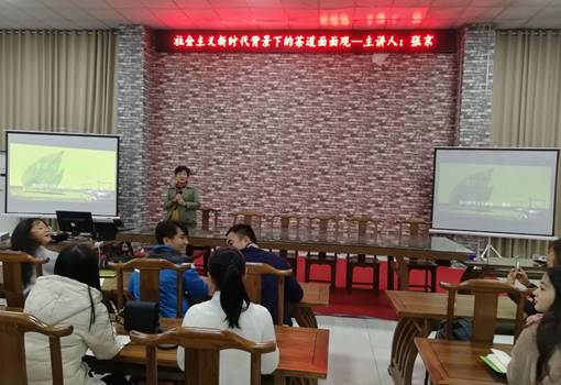 学术报告分为三个环节。首先,张京会长介绍了四川茶文化的发展历程及四川茶产业发展中存在的问题;接着,张京会长向同学们介绍了进入社会主义新时代后,如何从事茶文化传播;最后,张京会长与同学们现场互动,教授同学们茶艺手操,便于同学们更好地学习茶艺茶技。