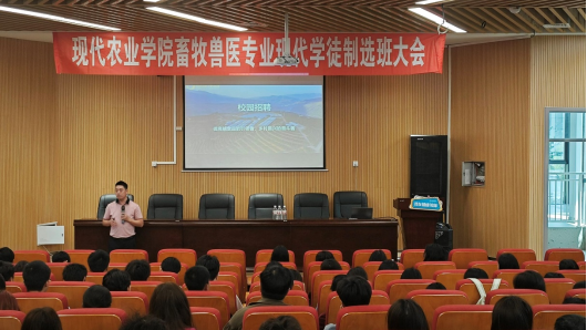 2024年4月27日,现代农业学院2023届现代学徒制班班仪式在凤凰楼报告厅隆重举行。四川德康农牧食品集团有限公司、四川正大畜牧有限公司、巨星农牧有限公司、宜宾大北农农牧科技有限公司等业内领军企业人事管理领导分别作了企业简介、职场规划、成长路径、专业未来的报告。2023级畜牧兽医专业156名同学们认真聆听了四家企业的文化内涵、发展历程行业前沿动态未来目标,为他们未来的职业生涯奠定坚实的基础。