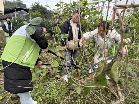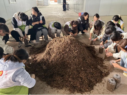 为强化动手能力,本次实习特别设置了学生体验环节。在基地技术人员的指导下,同学们亲自参与了平菇装袋和桑树枝条修剪等农事操作。通过亲手实践,大家不仅掌握了基础技能,更深刻体会到农业生产的细致与辛劳,实现了理论与实践的深度融合。