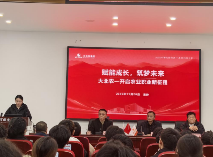 大北农集团四川区人力总监王兴平结合行业趋势发言。他指出,畜牧行业正迈向智能化、绿色化转型,亟需兼具理论素养与实操能力的人才。大北农将以“实战中成长”为理念,为学子提供轮岗实践、项目攻关等机会,助力其快速适应行业需求。