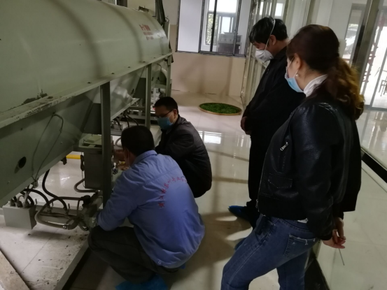 在翠绿茗茶业公司,茶叶专业教学科研团队对我院开展的新型职业农民王燕进行了回访交流,了解她开办的翠绿茗茶业公司在生产中存在的问题。在现场,恰好遇到该公司茶叶杀青机不能正常工作,导致杀青叶焦糊,茶叶专业教学科研团队立马对杀青机进行了检查,了解了所存在的问题,并建议公司及时联系设备厂家,尽快对杀青机控制模块进行维护处理,降低因设备原因导致的经济损失。