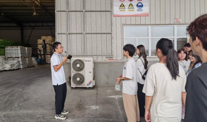 活动伊始,全体师生在产品经理张阳的带领下参观生产车间。张阳结合生产线实景,为同学们详细讲解了饲料生产工艺流程、质量控制标准及智能化设备应用情况,并系统介绍了企业从原料采购到成品销售的全链条运营模式,帮助大家深入了解现代农牧企业的实际运作机制。