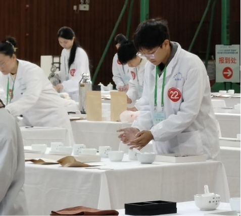 茶学“专业技能”赛道经过前期各高校初赛选拔,我院共有9名优秀选手晋级决赛。在两天的决赛中,选手依次在理论考核、审评基础技能和茶叶拼配技能模块展开了紧张激烈的角逐。